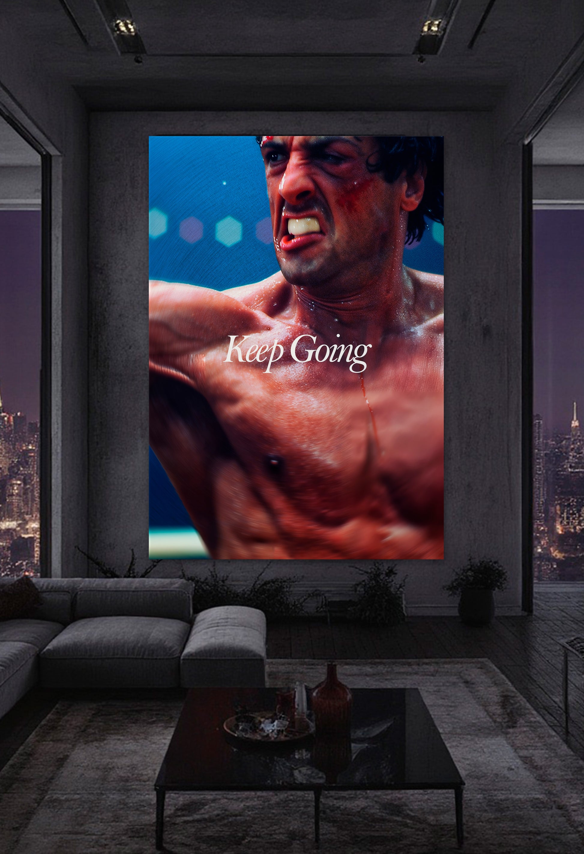 A visceral testament to strength and perseverance: sweat, wounds, and determination intertwine to remind us that true triumph is born from not giving up. This piece inspires you to rise once more, throw the next punch, and turn pain into fuel for victory