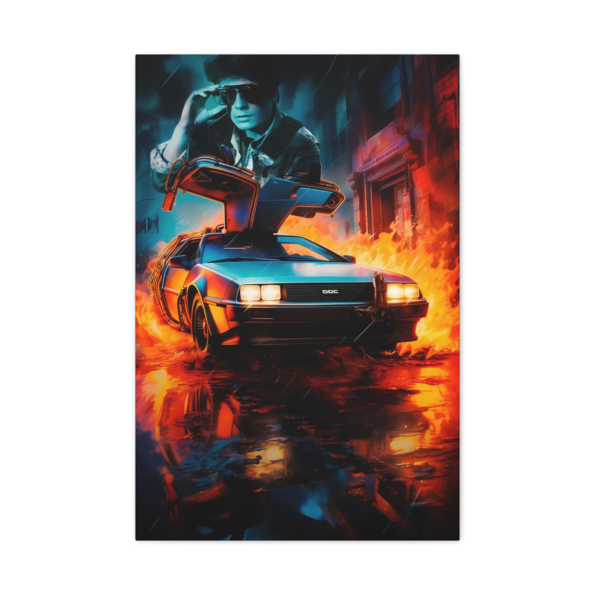 An icon on wheels rips through flames and reflections: the time machine opens a breach between what was and what could be. The past lights the path; the present demands a choice: take the wheel, hit the gas, and create the future you deserve.