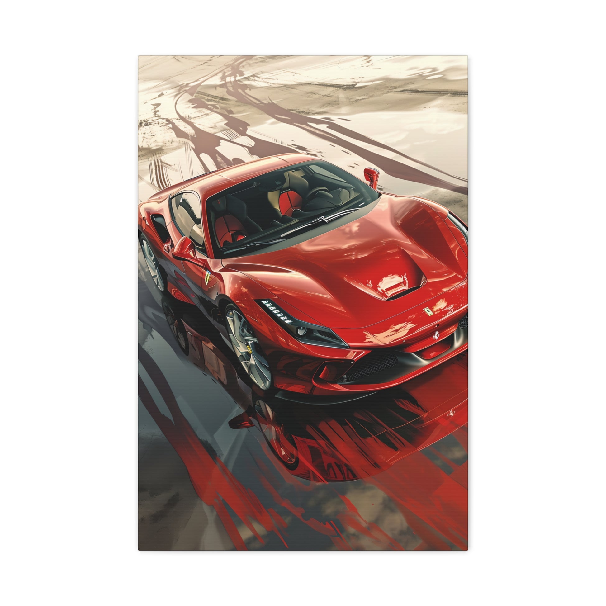 A scarlet supercar rests on a liquid mirror that reflects a sky set ablaze: sculpted curves, wheels like jewels, and a sheen that whispers craftsmanship and power. A promise of speed and status—an invitation to raise ambitions and drive toward excellence with elegance.