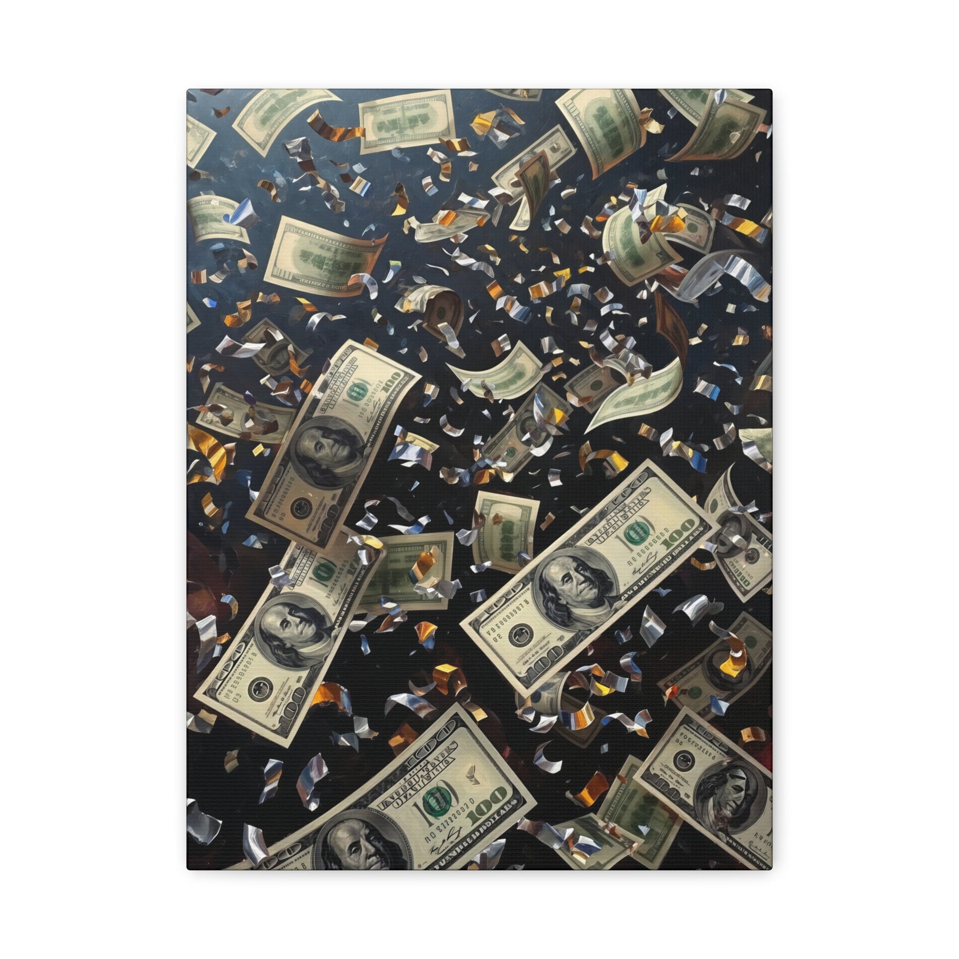 When perseverance meets opportunity, success rains down in abundance. Each bill that dances in the air is a symbol of rewarded effort and dreams achieved. Amidst flashes of gold and silver, this work celebrates the magic of transforming vision into reality and determination into prosperity. A vibrant reminder that triumph is within reach of those who dare to soar.