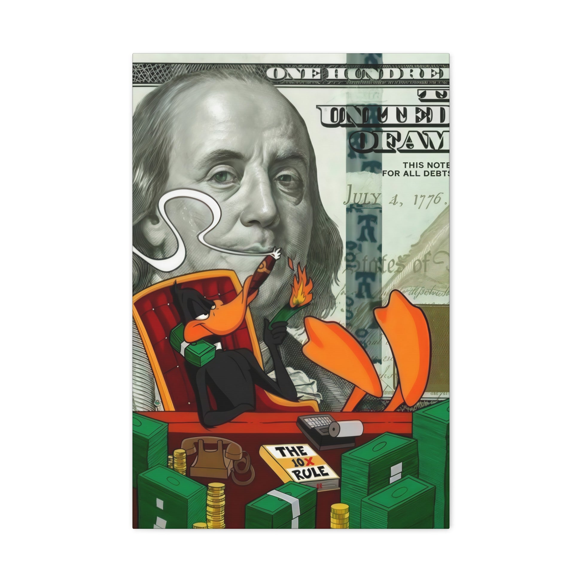 An anthem to daring: boldness, strategy, and reward amid towering stacks of cash. Hang this piece to remind you that fortune favors those who dare.