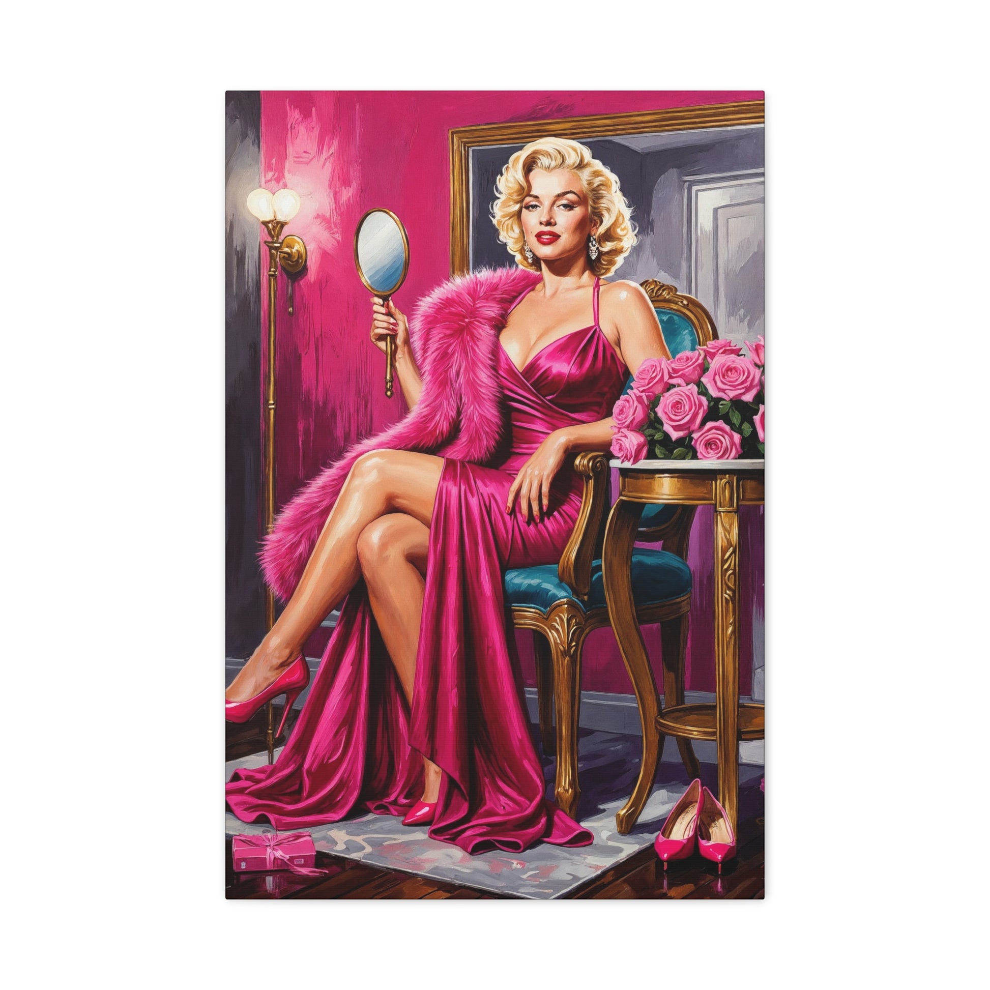 Seated among velvet and blossoms, she asks for no permission—she grants herself the spotlight. Every fold, every rose, every glance is a declaration of courage; pink becomes resolve. This piece calls you to claim your place with grace and determination—rise, robe yourself in confidence, and shine without apology.